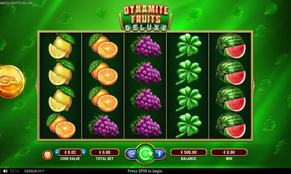 You can try the Dynamite Fruits Deluxe slot machine from the GameArt provider in demo mode on our website for free.