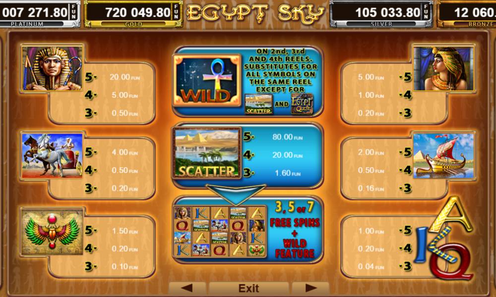 The Egypt Sky Egypt Quest pokie machine is interesting in its features and bonus rounds. The mechanics are simple, so every user will quickly understand. Casinoz experts believe that the slot is successful and addictive, the only question is its benefits. Everything here is very dependent on luck, even more than usual in pokies.