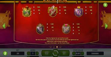 Be aware that you only get a win for one combination you get in the Excalibur game. If you get more than one, only the one that guarantees the highest payout counts.