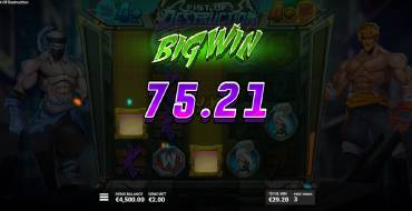 The fist symbols are divided into teams - Red and Blue. If the fist "punches" the opposing team's fighter symbol or wild symbol, a multiplier (x2 to x200) is added to the reel, which is applied to all wins on that line.