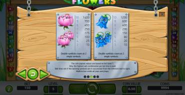 An original particularity of Flowers slot machine is symbols with images of one or two similar flowers. Double symbols are considered as two single, that’s why a combination can include up to ten symbols at five reels.
