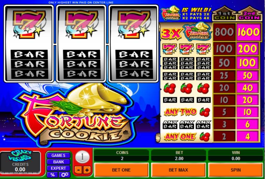 Fortune Cookie is a classic three-reel non- progressive slot machine from Microgaming. The game has wild symbols, scatter symbols and multipliers. The maximum size of the jackpot is $8,000. In the game you can make a bet of 0.25, 0.50, 1, 2 dollars per line. Thus, the bet varies from 25 cents to 2 dollars.