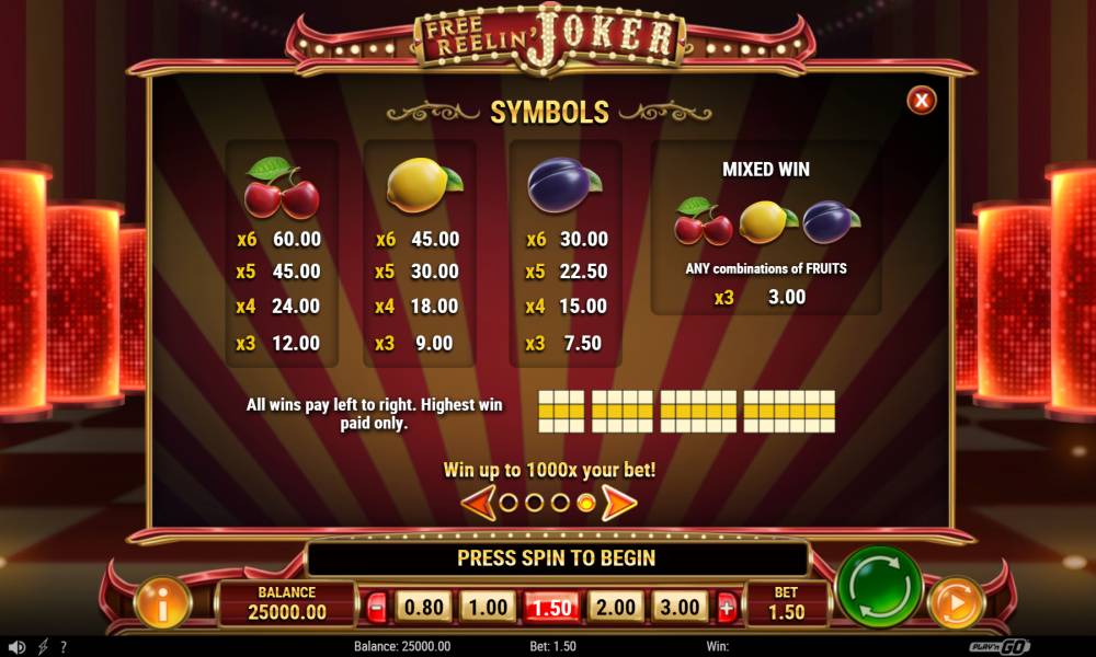 The Free Reelin Joker slot machine from the Play’n Go provider has a standard playing field, consisting of 3 reels with 1 symbol. All payouts are made on 1 line.