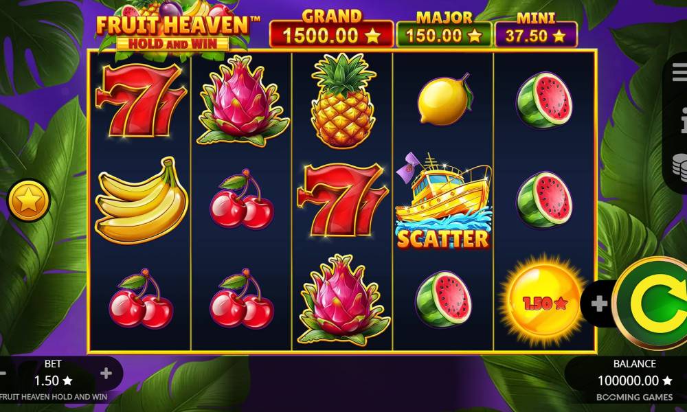 Fruit Heaven Hold And Win was released in April 2024. This is a pokie from the Maltese studio Booming Games. It is designed in a fruity theme. Despite the fact that "fruit" pokies is one of the most hackneyed categories, Booming Games has a very good result. Fruit Heaven Hold And Win looks beautiful, neat and high quality. Despite the simple mechanics, it will not get bored quickly: the added bonus features are enough to keep the interest of even an experienced gambler.