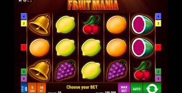 Watermelons, grapes, bells and sevens are more valuable symbols, although they don't fall out as often. The red seven is a sign of great luck, especially if a combination of five symbols falls out, as the bet in this case will increase 500 times.In the Fruit Mania slot there are no Wild symbols and scatter, free spins and other bonuses are also not found here, not to mention the progressive jackpot.