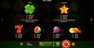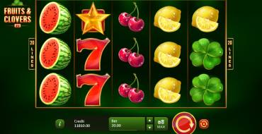 Paid combinations can be formed at twenty active lines (please read about exceptions below in the review of the Fruits and Clovers 20 Lines) of three, four or five same elements. All chains must begin from the first left reel.