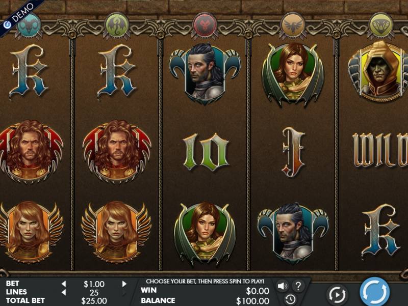 «Game of Swords» online slot machine has five reels and twenty five pay lines. The gamblers can use any of available lines. The screen fits fifteen symbols, located in the most popular order 5x3.