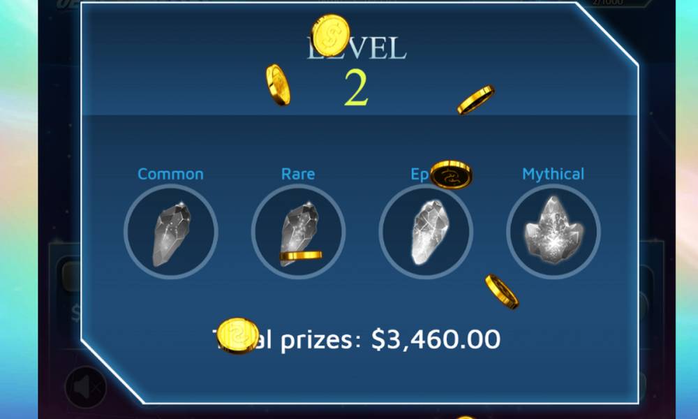 Level Up. Moving to a higher level occurs only after the right number of points is collected. They are awarded for each winning combination. If Nebula Stones were available at the moment of transition, the player receives prize multiplications to the bet according to the type of crystals.