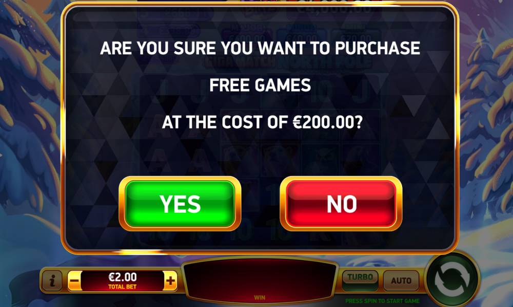 Buy Feature. The button to buy free spins is to the left of the box. The price of the package (10 FS) is x100. Since 4 Scatters pay x3 of the bet - this amount is immediately counted as a win, and the actual package price is x97.