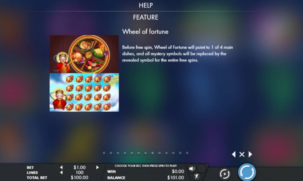 You can find the multipliers, a visual scheme of active lines, description of the symbols and bonus features at proper pages of the pay table.