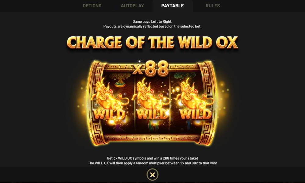 The Golden Horns pokie has a simple yet beautiful design. The reels are placed on a brown background surrounded by paper red lanterns. Rotations are accompanied by a harmonious oriental melody. The game is calm and unobtrusive, although some players may not like this monotony. Management pokie is simple - all the buttons are located immediately below the drums. Even below is the status bar with the balance and the current rate. In the menu, which is indicated by a button with three dots, you can find rules, symbols and features.
