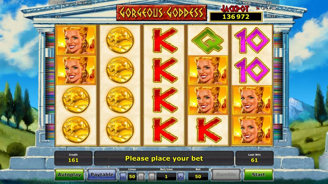 «Gorgeous Goddess» online video slot, developed by Novomatic company, is devoted to Aphrodite from myths of Ancient Greece. Other characters of ancient legends also show up at the screen, but the goddess of beauty and love play an especially important role. She will gift you with high payoffs, help forming combinations and give a chance to fight for a progressive jackpot.