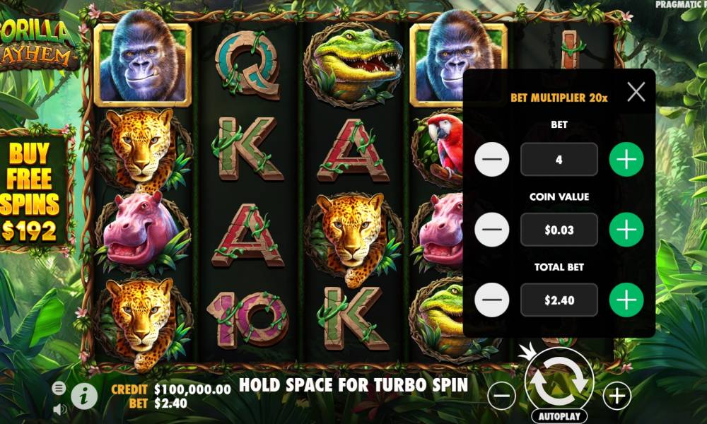 Rate the Gorilla Mayhem slot machine from the Pragmatic Play provider, share your opinions, and leave comments.