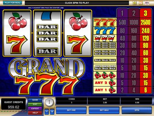 Grand 7's is a three-reel non-progressive classic slot with one payline, manufactured by Microgaming. The scatter is available in this game. The maximum size of the jackpot is $12,500.