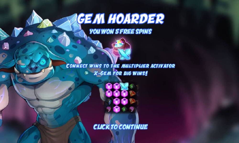 Prize game Gem Hoarder is activated when three symbols of a bag of jewels. In this case, the player gets 5 free spins, and their counter can reset to 5 when three bags fall out again. During this round, each winning combo increases the global multiplier by +1. If the prize clusters are linked to a special stone, a accumulated multiplier is applied to the winnings, significantly increasing the total score.