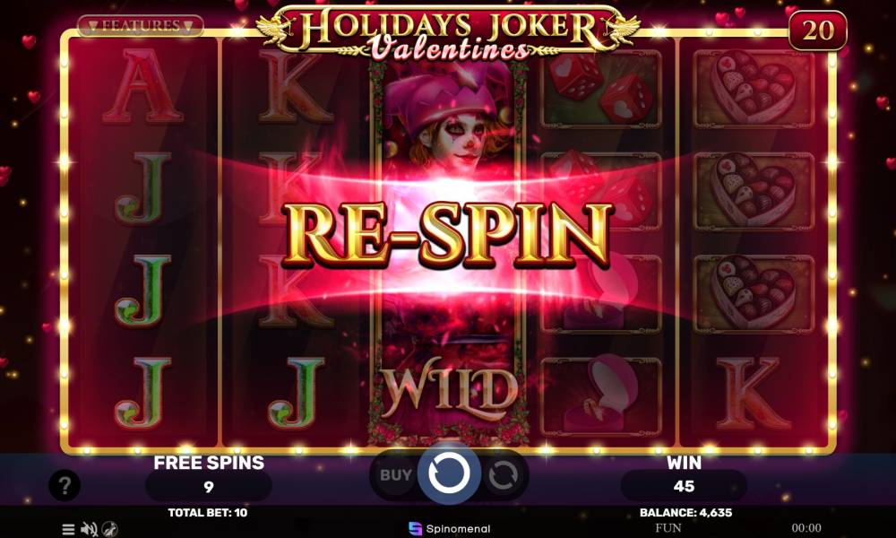 The rules of the game Holidays Joker - Valentines are quite simple. The playing field consists of 5 reels in 4 rows. There are 20 fixed paylines. Combinations are formed from left to right, starting from three identical symbols in a row. The rate is selected from the proposed range, which vary from 0.2 to 200 euros. The maximum winnings have an increase of x3000 of the bet. During the game, you can activate free spins with the Expanding Wilds bonus feature, which triggers respins, significantly increasing the number of attempts. There are 8 standard and 2 special symbols on the reels.