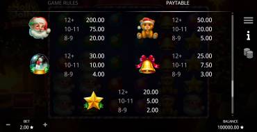 Demo version is needed to practically study all the features of the pokie: from combinations of symbols to the triggering of bonus features. It is free: the developer gives the balance of 100,000 points. They are enough for tens of thousands of spins, so the player will have time to familiarize in detail with the work of Holly Jolly Bonanza.