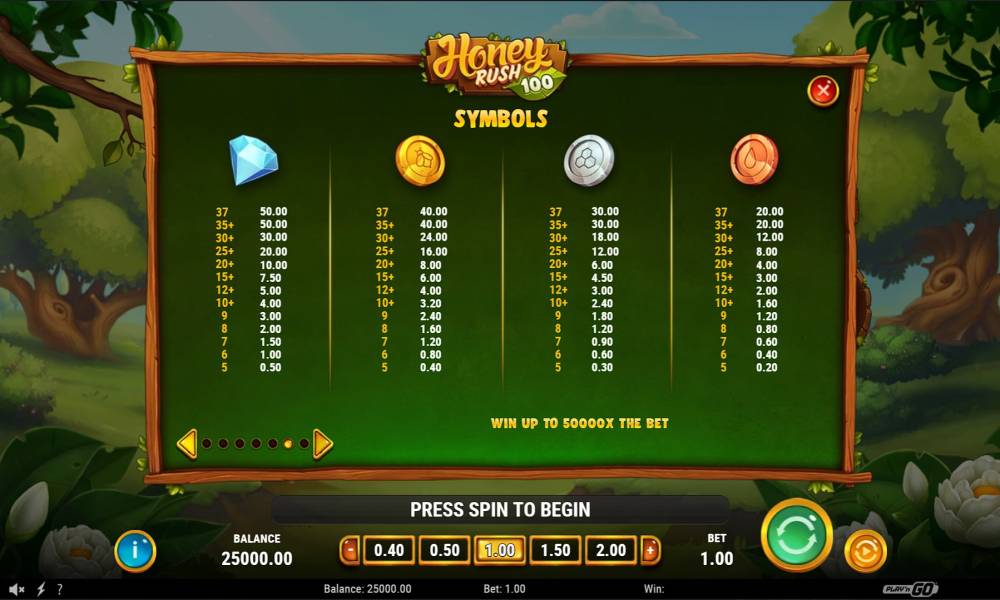 Demo version will help you understand the rules of the Honey Rush 100 and make a decision or it is worth moving to real bets.
