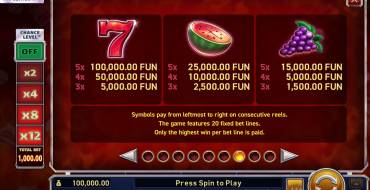 The payout table has all the information on symbols and their values. If you want to adjust the volatility, this is available via the chili pepper button.