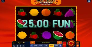 The pokie uses a playing field with 5 reels and 3 rows. There are 20 paylines, their number cannot be changed. The maximum amount that can be won in Hot Slot: 777 Crown Extremely Light is only x305 of the bet.
