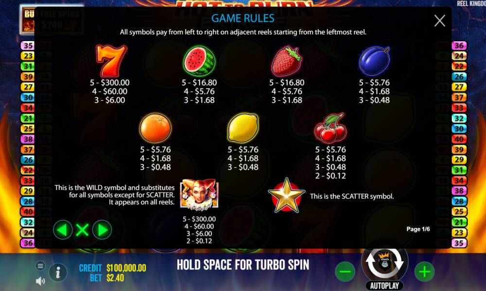 The maximum bet in the Hot to Burn Extreme slot is $240.
