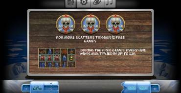 The following items are imaged at the fifth reels: a bottle of rum, a cup and a flask. They are provided with labels where extra multipliers are displayed. They are taken in account in calculation of the payoff by combination formed at this line.