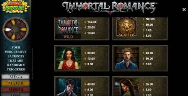 All symbols in the Immortal Romance Mega Moolah slot machine from the Microgaming provider can be divided into two categories: