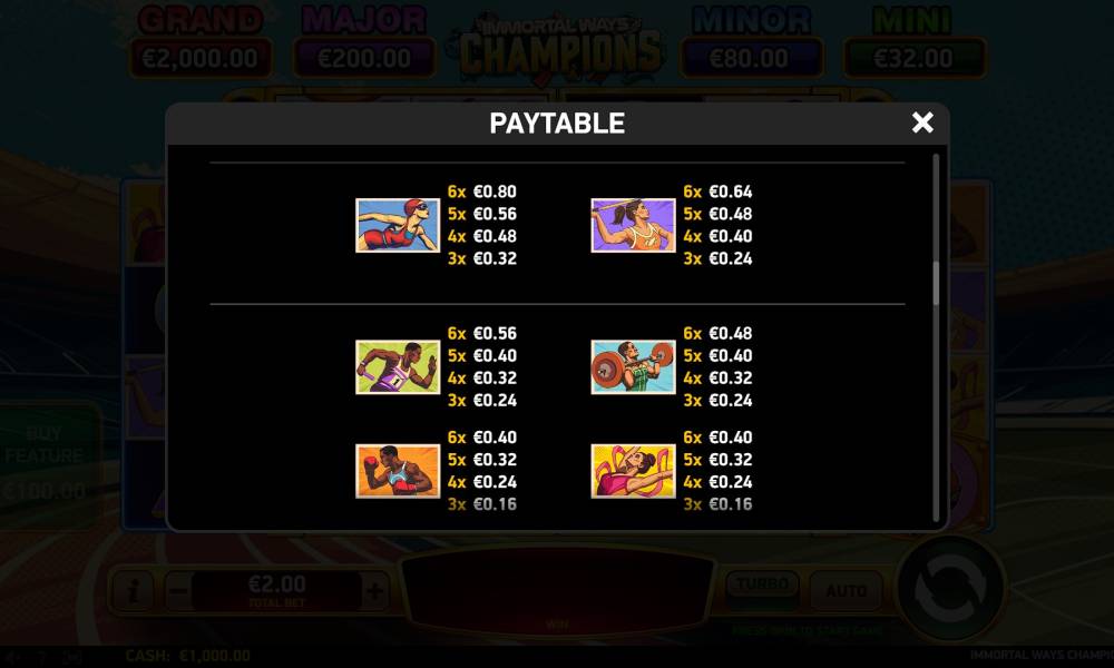 iGambling developers release relatively few pokies dedicated to sports. Ruby Play have decided to remedy this and have created Immortal Ways Champions. Its theme is not a sport, but the Olympic Games, with different disciplines among the symbols on the field. The unusual design is complemented by the interesting mechanics of the Immortal Ways. This is a Ruby Play specialty: the provider has a whole series of such pokies, which includes about a dozen games on different themes.