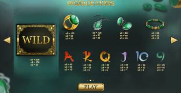The gaming symbols, imaged at the reels of this video slot, are different jewelry with green gems, as well as letters and numbers, which mean values of playing cards. Some icons can drop in stacks at the reels.