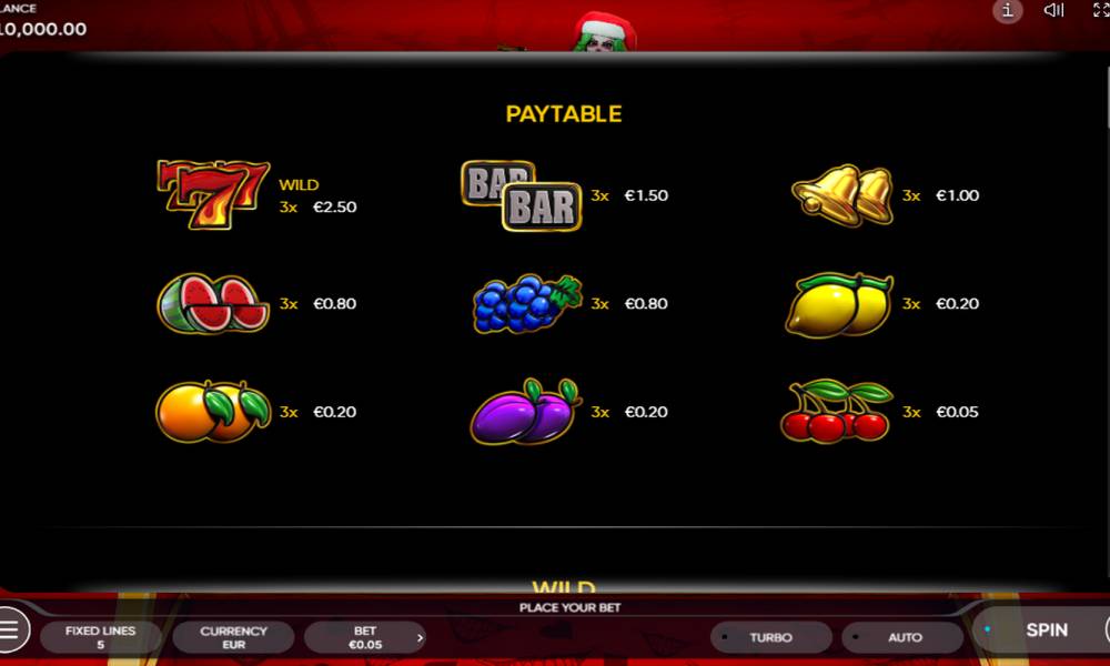 | Theme | Fruit/Vegetables, Classic Slots, Gold, Luck, Action, Casino, Christmas |
