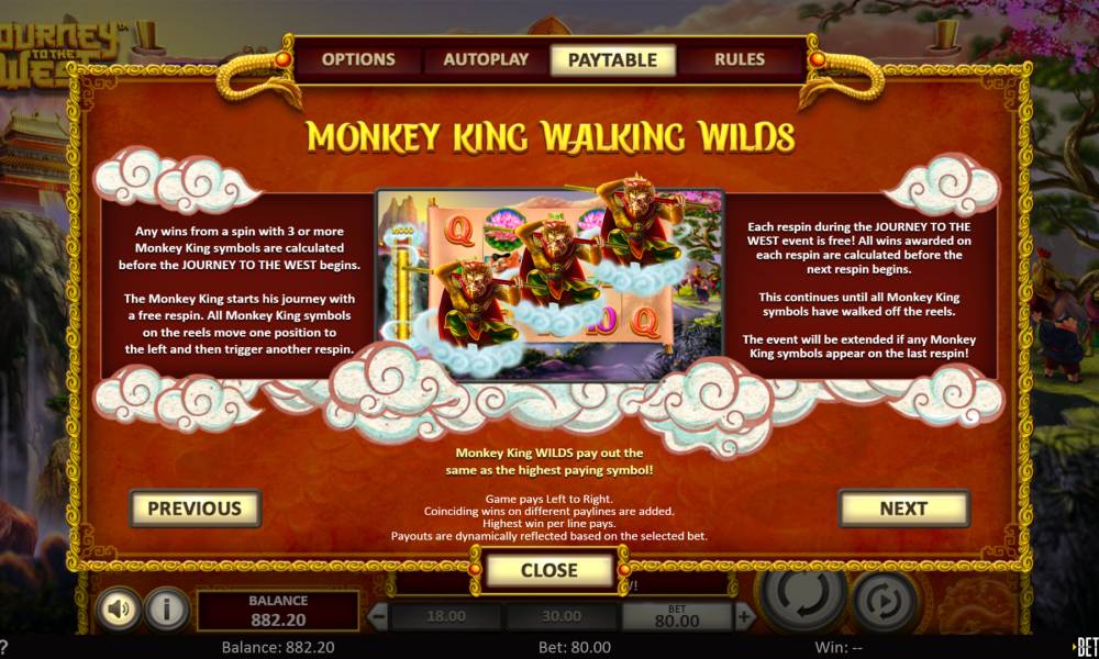 Please read about special symbols and prize options of the Journey to the West below at Casinoz.