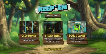 The main game in the Keep 'Em is built on the mechanics of repeated winning combinations with Cash Symbols and Get 'Em symbols. Apart from collecting and collecting winning coins, the Keep 'Em Reels mechanic is implemented here. The 3rd and 4th reels play the main role in this feature. When Get 'Em symbols, Scatter symbols or cash prizes appear on them, the re-spins are activated and the player is awarded three extra spins.