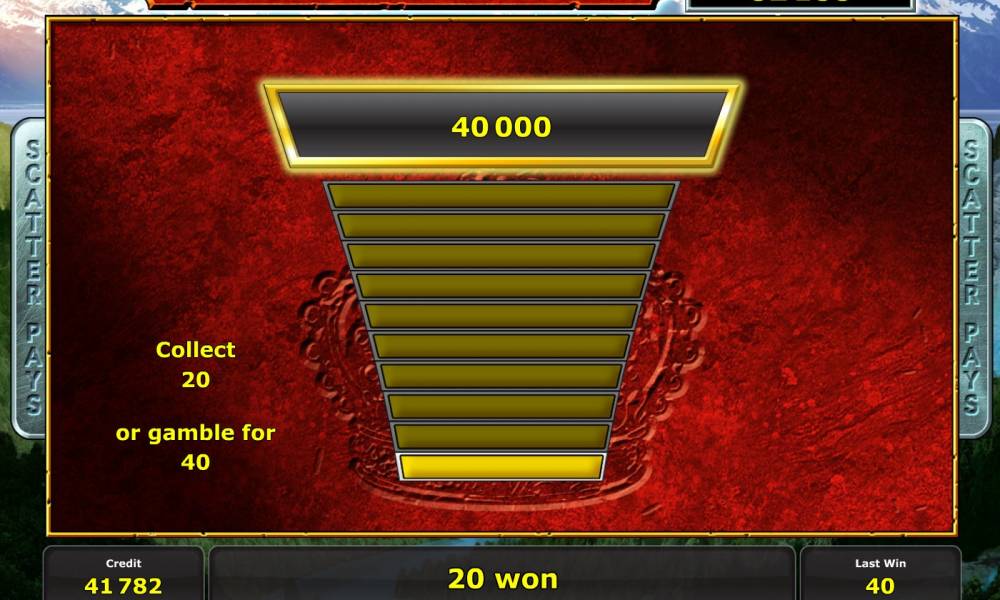 «Kingdom of Legends» video slot has fifteen cells at the screen to make combinations of ordinary and special symbols. Each cell is a special reel, spinning independently of the rest. There are no active lines in the classic form here. An amount of the bet per spin is ten coins always. The coin value is up to the customer in range suggested by the casino. For example, Star Games Casino offers to pay from four to one thousand credits for a chip, so this model accepts from forty units to ten thousands per round. «Kingdom of Legends» slot machine is provided with ordinary symbols, special elements, a progressive jackpot, a round of double game and free spins with advanced features. Winning combinations are made by the special methods named Scatter Pays. Payoff goes to the gambler for five and more same symbols shown at any cells of the screen at the same time. They don't even need to be situated at the neighbor reels. An amount of the win is calculated by the coin value and the special index, provided by the rules for each of the possible combinations. It might be from x5 to x2000. Multiply paid combinations can be formed in result of a single spin. In such cases all charged credits are summarized. A game of chance is on the customer’s wish. It was designed in the simplest form, that means you need to move up the stairs. Your payoff might be doubled up at every level, if you are lucky. Otherwise, all money go to the casino. Please read about different types of symbols, bonuses and jackpot below.