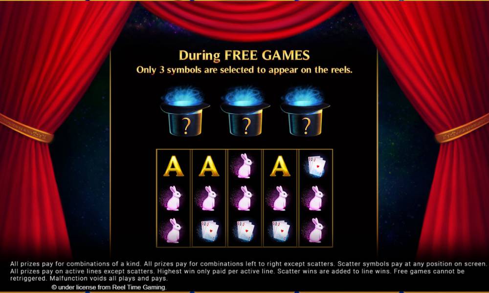 Graphics and animation of the pokie create an atmosphere of mystery, immersing the player in the world of a classic magic show. The musical accompaniment complements the overall impression, enhancing the feeling of magic and mystery.