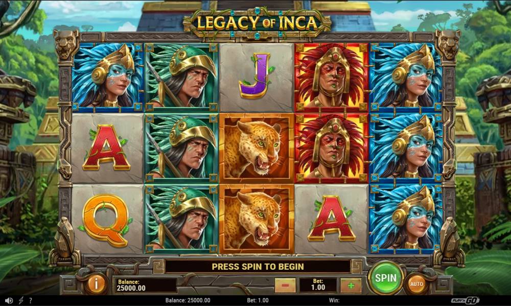 The interface of the Legacy of Inca pokie is clear at a glance, and it is very easy to start the gameplay:
