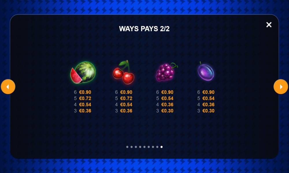 In the Lightning Fortune, the field dimensions are uneven: it has 6 reels in width, while the height increases from left to right, and is 3-3-4-4-4-4-5-5-5 cells. Winnings are formed without lines according to the mechanics of Ways Pays - pay for the appearance of identical symbols on 3+ reels in a row, starting from the left one. In total, up to 3600 combinations can form on the field, and the payout can reach a multiplier of x25000. The gambler can set the bet size from 0.30 to 30.