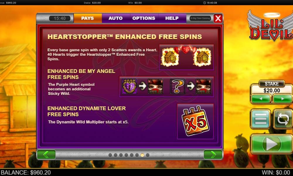 A gambling feature is not suggested. Please read about bonus options, special symbols, exceptions from the general rules and other features of the Lil Devil by Big Time Gaming below in the review.