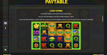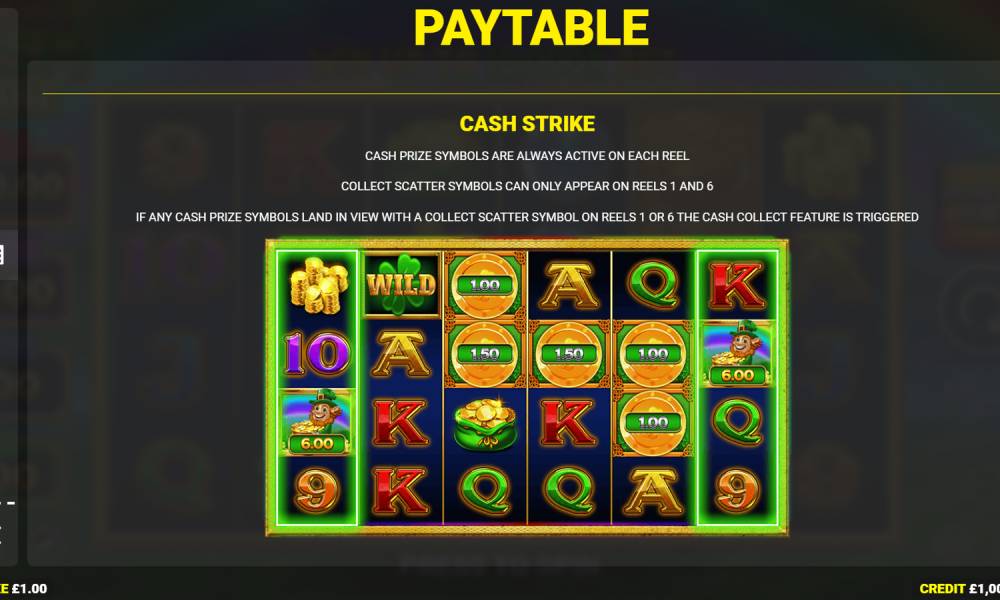 Cash Strike. This feature is activated when there is one or more coins on the field and a Collect symbol on reel 1 or 6. Then the Collect symbol absorbs all the cash values and immediately pays out to the user.