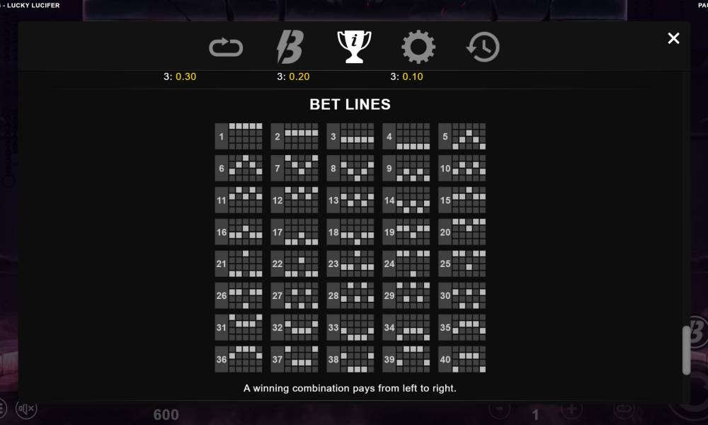 The Lucky Lucifer slot machine from the Slotmill provider has a 5x4 playing field with 40 fixed lines.