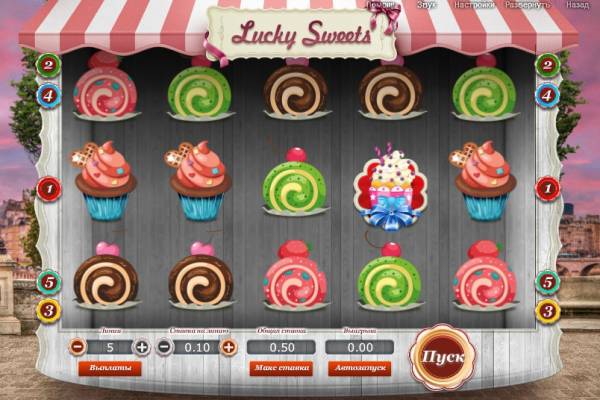 Lucky Sweets video slot is designed in style of a shop, which sells sweets next to the bridge on Sena in Paris. It is possible to buy cakes, candies, ice-cream, pies and other delights of small and adult sweet lovers.