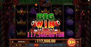 Free version of the Magic Target Deluxe, for introductory purposes or just for fun, you can open directly on Casinoz. In order to spin the reels of the slot machine on our portal you don't have to register, and even more so, you don't need to make a deposit. Playing in the demo mode does not involve making real finances, and for bets you are given virtual coins and payments are accrued in the same virtual currency.