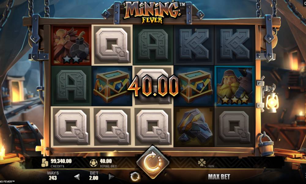 Mining Fever is a video slot that features 5 reels and 243 winning ways across a 15-symbol screen.