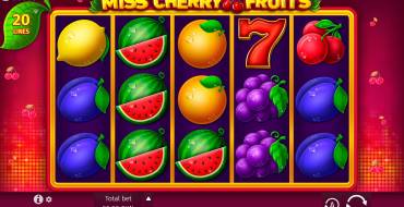 The Miss Cherry Fruits slot machine from the Bgaming provider has a standard playing field, consisting of 5 reels with 3 symbols. All payouts are made on 20 lines.
