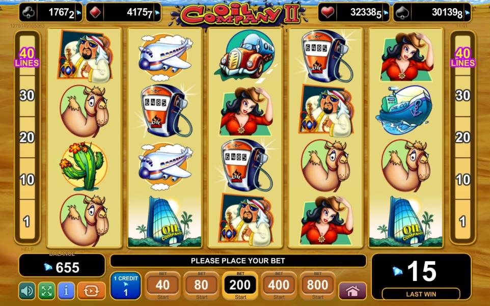People, animals and items imaged at the reels of «Oil Company II» slot machine are directly or indirectly connected with the oil production. Here you can see tankers, petrol stations, oil cisterns, sheiks, brokers and even camels and cactuses. There are two special symbols in «Oil Company II» slot machine: Scatter (a logo with «Petrol Stock Exchange» title) and Wild (an oil derrick). Now shortly about their functions: