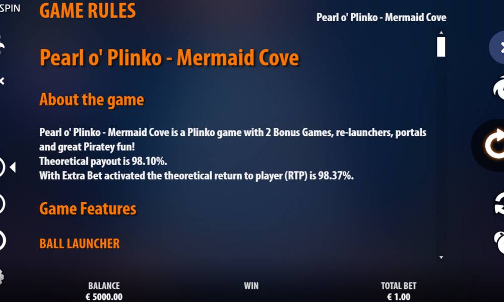 Quickspin offers the original Pearl o' Plinko - Mermaid Cove pokie about the adventures of pirates engaged in a treasure hunt. The game has no traditional reels, paylines, Wild and Scatter symbols. The main ones in it are pearl balls spilling out of the shell and bringing gamers wonderful winnings. The amount of prizes are affected by the number of balls, the selected bet, obstacles with different functionality and luck. Two bonus games, which can be purchased if desired, help to increase the payouts.