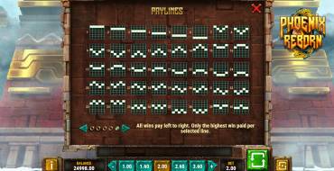 The Phoenix Reborn is provided with basic symbols, expanding Wilds, Scatters, stacked elements and single icons. Free spins and unique prize features are also available.
