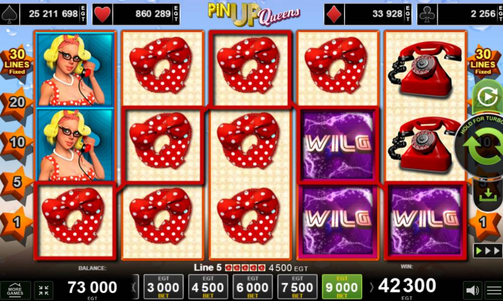 Do you want to look at bright, beautiful and sexy, but at the same time not vulgar girls? Pin Up Queens pokie will give you that opportunity. It was released in 2020 by Amusnet and features special symbols, free spins, bonuses and jackpots. Thanks to the familiar mechanics and payouts on fixed lines, everyone will quickly get used to the machine and immediately begin to enjoy. Frequent wins and large jackpots contribute to lifting the mood and quenching the excitement.