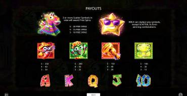 The Pinata Fiesta online slot machine has five reels and twenty lines, which are always active on default. The screen fits fifteen symbols in the regular mode.