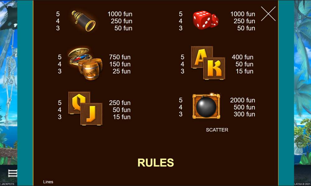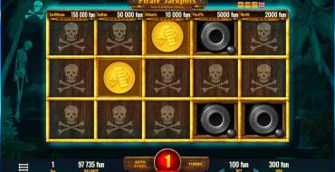 The Pirate JackPots regular spins mode offers you the chance to try your luck on a 5x3 playing field with 8 regular and 2 special symbols. During the bonus game, 4 separate symbols, each with their own features, take part in the free spins. The combinations are counted from left to right, all wins are made according to the pay table. The stake is chosen by the player among the ready-made values from the range of 0.2 to 100 euros. Although the pokie is listed as high volatility, it does not make you wait very long for wins, but still not recommended for beginners.