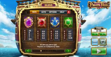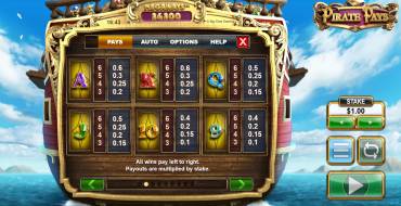 The pokie field is depicted on the back of a floating ship (stern), and the background is the sky and waves. On the computer, the buttons are to the right of the field, and on mobile devices, the buttons are below the field. The bottom left corner of the screen shows the balance, and the bottom right corner shows the amount of winnings in the last spin. Above the field there is a Megaways window, which displays the maximum number of winning combinations that can be formed on the field (it has no functional use for the player). The set of buttons is small: there are left-right arrows to change the bet, a blue button with 3 bars to open the menu, a manual start button and a button to start autospins. In autospins mode you can set the stop by the number of spins (5-100), the maximum size of 1 win or the limit on the amount of money spent. There are 4 tabs in the menu, which are arranged in a horizontal list: pay table, autoplay mode settings, sound settings and game rules. In the pay table and rules, you can flip through the pages with the left-to-right buttons, which are located on the bottom left. For those who want to play Pirate Pays Megaways - we have prepared some recommendations: